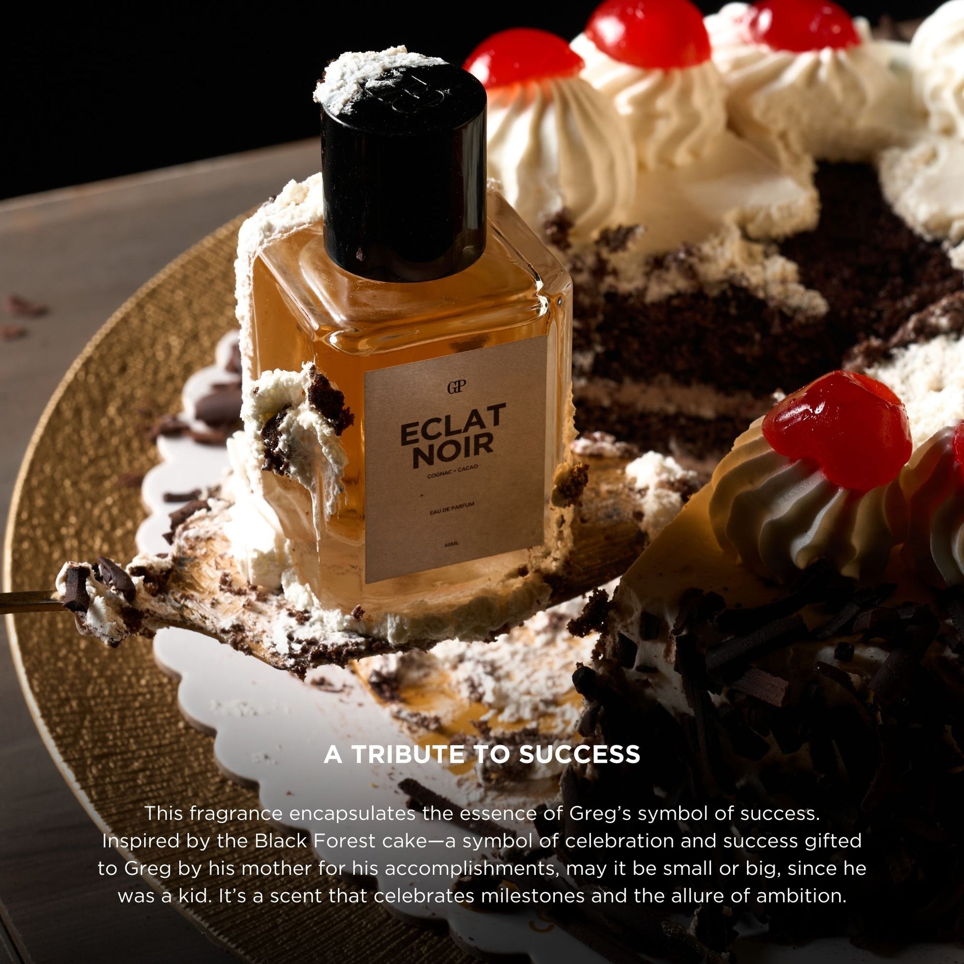 A Tribute to Triumph: This fragrance encapsulates the essence of youthful achievements, inspired by the Black Forest cake, a symbol of celebration and success gifted to Greg in his formative years. It’s a scent that celebrates milestones and the allure of ambition.